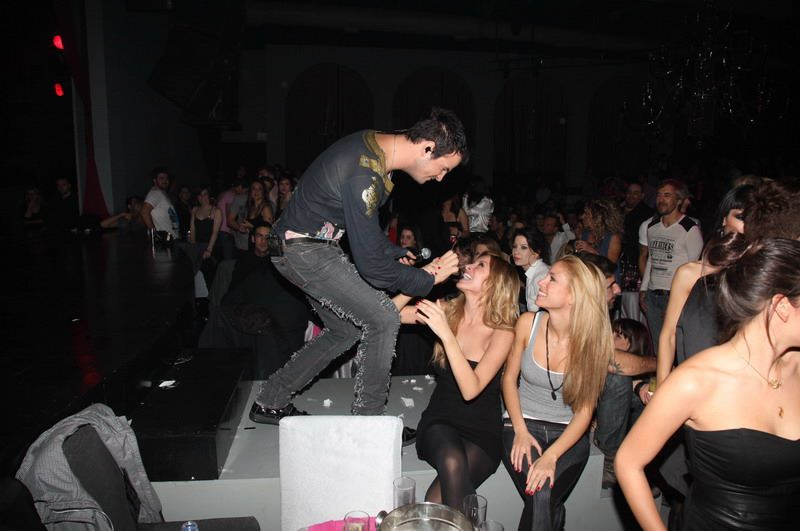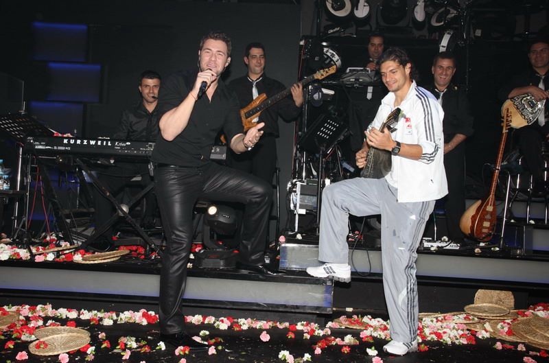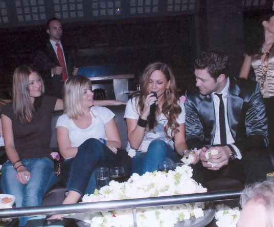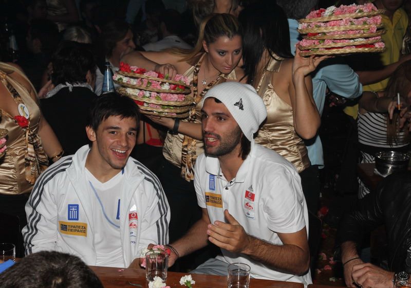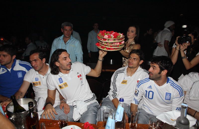Το νυχτερινό κέντρο Posidonio, όπου εμφανίζονται ο Χρήστος Χολίδης και η Χριστίνα Κολέτσα, επέλεξε η εθνική ομάδα ποδοσφαίρου για να γιορτάσει την πρόκρισή της στο Μουντιάλ του 2010. Στη φωτογραφία από αριστερά: Φάνης Γκέκας, Σωτήρης Κυργιάκος, Άγγελος Χαριστέας και Γιώργος Καραγκούνης.