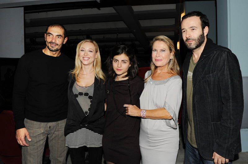 Τρεις από τους πρωταγωνιστές της παράστασης «Η Παλίρροια του Σεπτέμβρη», ο Αλέκος Συσσοβίτης, η Βίκυ Καλπάκα και η Ελένη Ερήμου μαζί με τον Θανάση Ευθυμιάδη και τη Φαίη Ξυλά.