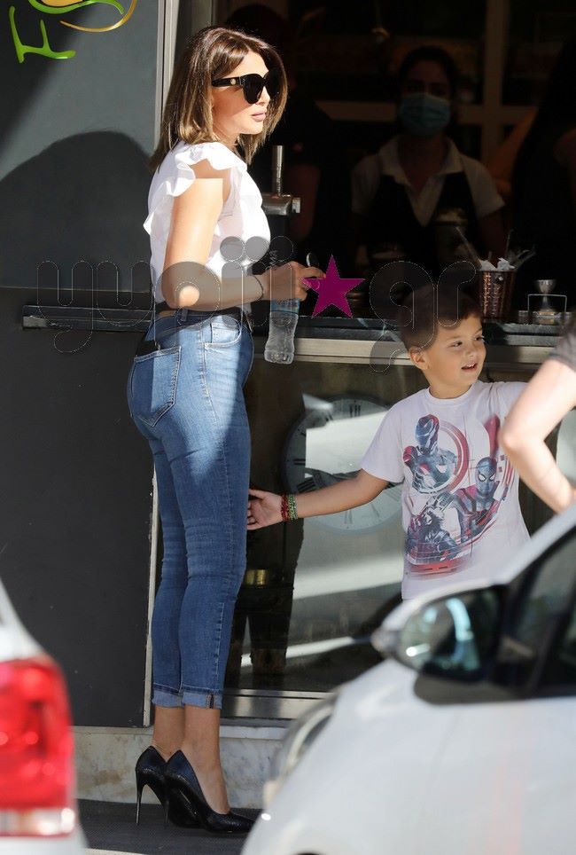 Φορώντας ένα λευκό μπλουζάκι, στενό τζιν και ψιλοτάκουνες γόβες και συνοδευόμενη από τον... άντρα της ζωής της, τον γιο της Βασίλη και καρπό του έρωτά της με τον Σάββα Γκέντσογλου, η γνωστή τραγουδίστρια εθεάθη στη Γλυφάδα με ανανεωμένο look και μαγνήτισε τα βλέμματα.