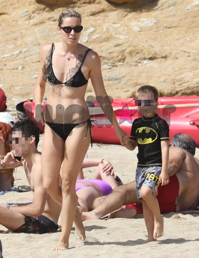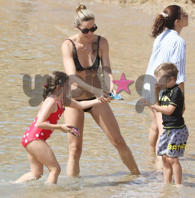 Χαλαρή και ευδιάθετη δεν σταμάτησε να παίζει με τα μικρά της, ενώ τα βλέμματα μαγνήτισαν οι εντυπωσιακές της αναλογίες.