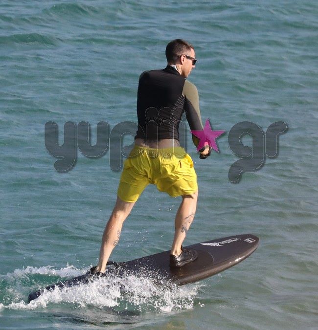 Μάλιστα, ο Πάρις Κασιδόκωστας επιδόθηκε και στο αγαπημένο του θαλάσσιο σπορ, μαγνητίζοντας τα βλέμματα των λουόμενων.