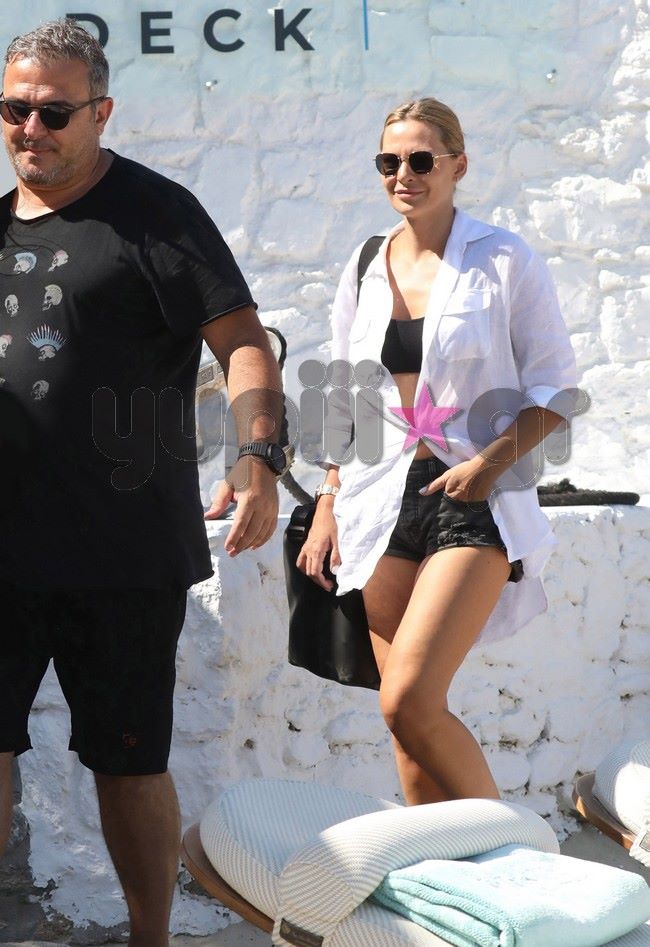 Ο φωτογραφικός φακός τους εντόπισε σε κοσμική παραλία του νησιού, χαλαρούς και ευδιάθετους, να επιβιβάζονται σε σκάφος για μια βόλτα γύρω από το νησί.