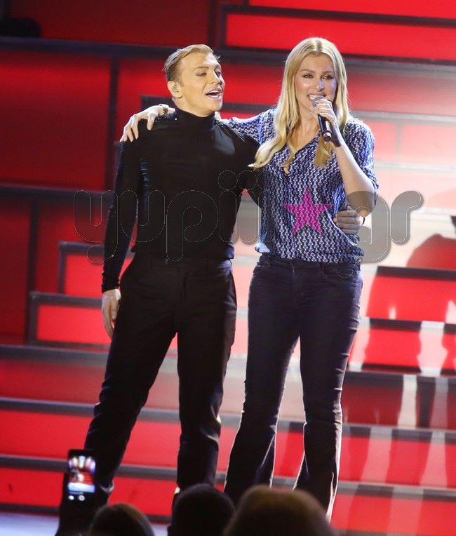 Μάλιστα δεν έλειψαν και οι εκπλήξεις επί σκηνής, αφού η Νατάσα Θεοδωρίδου, ο Γιάννης Κότσιρας και η Έλλη Κοκκίνου δεν δίστασαν να ανέβουν στο stage και να τραγουδήσουν με τον λαμπερό performer.
