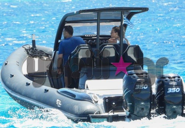 Με διάθεση για εξερεύνηση επιβιβάστηκαν στο φουσκωτό τους και απόλαυσαν τις κρυφές ομορφιές του νησιού, που τα τελευταία χρόνια γίνεται πόλος έλξης πολλών εκπροσώπων της ελληνικής showbiz.
