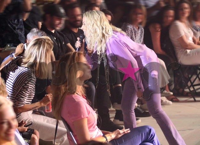 Συνοδευόμενη από τους άντρες της ζωής της, τον σύζυγό της, Θανάση Πανουργιά και τους γιους της Νέστορα και Νικόλα, η Σοφία Καρβέλα απόλαυσε την εμφάνιση της μητέρας της από τις πρώτες σειρές του θεάτρου και φυσικά η Άννα Βίσση δεν θα μπορούσε να μην τραγουδήσει μαζί τους.