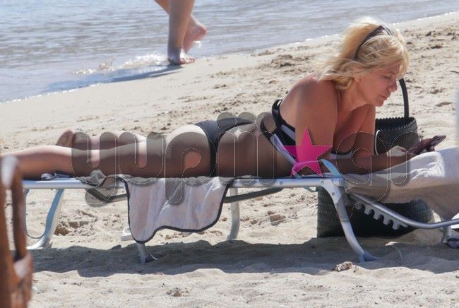 Σε ένα από τα μπάνια της στο νησί την εντόπισε και ο φωτογραφικός φακός του Yupiii και την απαθανάτισε σε σπάνιες στιγμές με τον πολυαγαπημένο της σύζυγο.