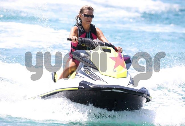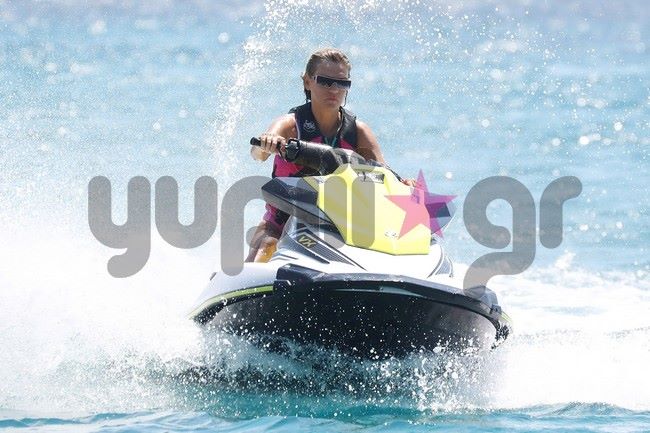 Ο φωτογραφικός φακός του Yupiii εντόπισε τη δημοσιογράφο σε γνωστή παραλία του νησιού να κάνει jet ski και να δείχνει πόσο καλή είναι.