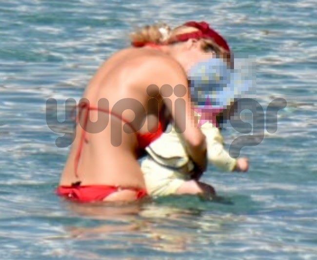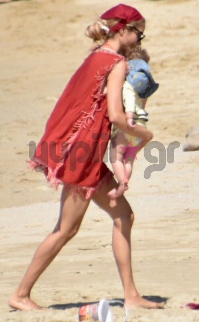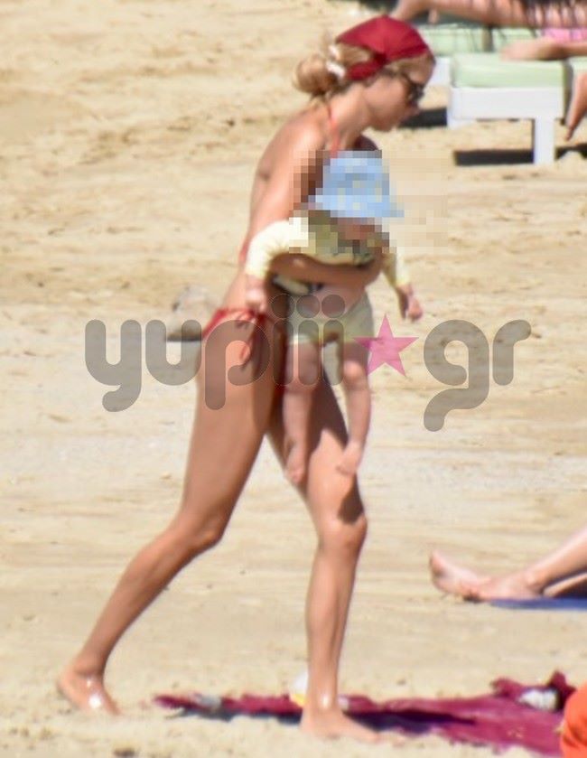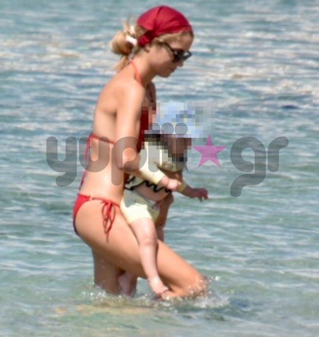 Πριν από μερικές ημέρες, ο φωτογραφικός φακός του Yupiii την εντόπισε μαζί με τον μικρό της γιο, Σάββα να απολαμβάνουν τις βουτιές τους σε μια παραλία του νησιού.
