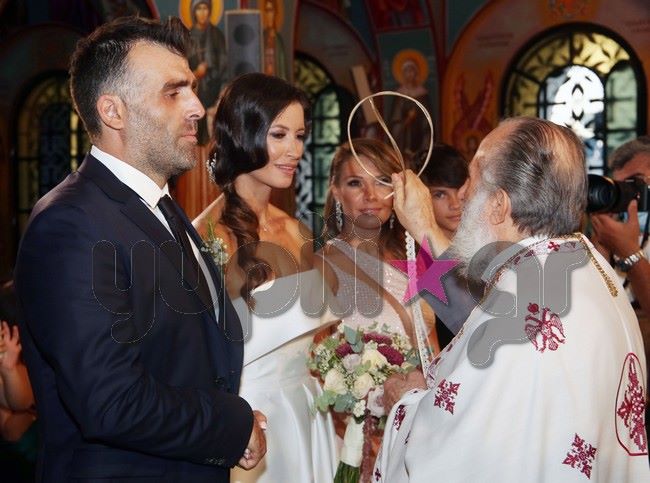 Το μυστήριο τελέστηκε στον Ιερό Ναό Κοιμήσεως Θεοτόκου στο Μάτι και κουμπάρα του ζευγαριού ήταν η κολλητή φίλη της νύφης, Χρύσα Γραβάνη.