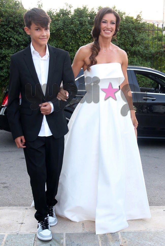 Η Μάρα Δαρμουσλή έλαμπε μέσα στο νυφικό της το οποίο επιμελήθηκε η Φαιδρα Θεοδωριδου στο ατελιέ της Bridal Loft Athens στο Σύνταγμα, ενώ έφτασε στην εκκλησία συνοδευόμενη από τον γιο της, Άγγελο.