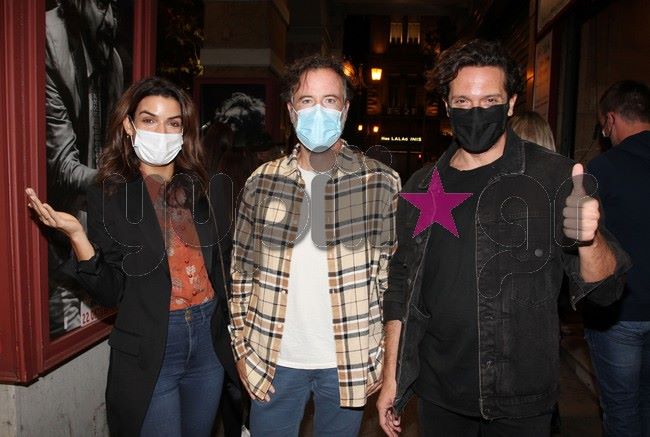 Φορώντας τις μάσκες τους πόζαραν στον φωτογραφικό φακό, ενώ φωτογραφήθηκαν και με τους συντελεστές της παράστασης. Μαζί τους βρέθηκε και ο καλός τους φίλος Δημήτρης Μωθοναίος.