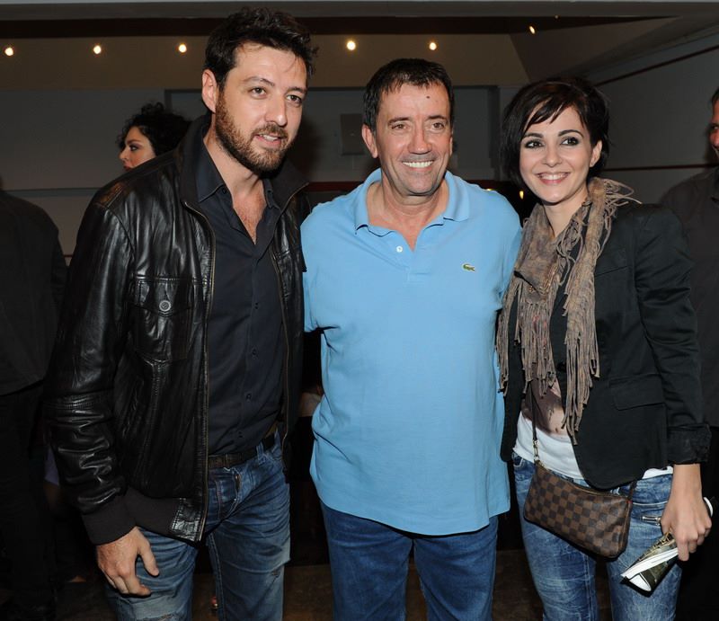 Ο Μάνος Παπαγιάννης και η σύζυγός του Αγγελική Δαλιάνη μαζί με το σκηνοθέτη και πρωταγωνιστή της παράστασης Σπύρο Παπαδόπουλο.