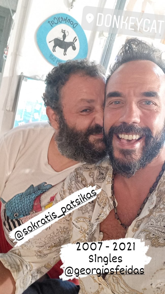 Πιο συγκεκριμένα, ο Πάνος Μουζουράκης βρέθηκε στην Ύδρα και επισκέφτηκε το μαγαζί του Σωκράτη Πατσίκα. Ο "Τζάμπα” και ο "Μπιλι” των "Singles” μοιράστηκαν το ίδιο τραπέζι μετά 14 χρόνια. Ο Πάνος Μουζουράκης θέλησε να μοιραστεί στα μέσα κοινωνικής δικτύωσης μία selfie τους, στην οποία έγραψε: "2007-2021 Singles” ενώ αμέσως μετά έκανε ταγκ τον δημιουργό της σειράς Γιώργο Φειδά.