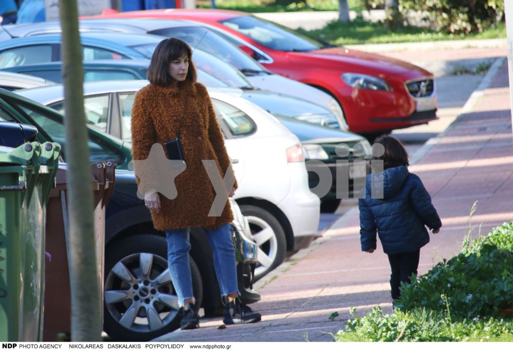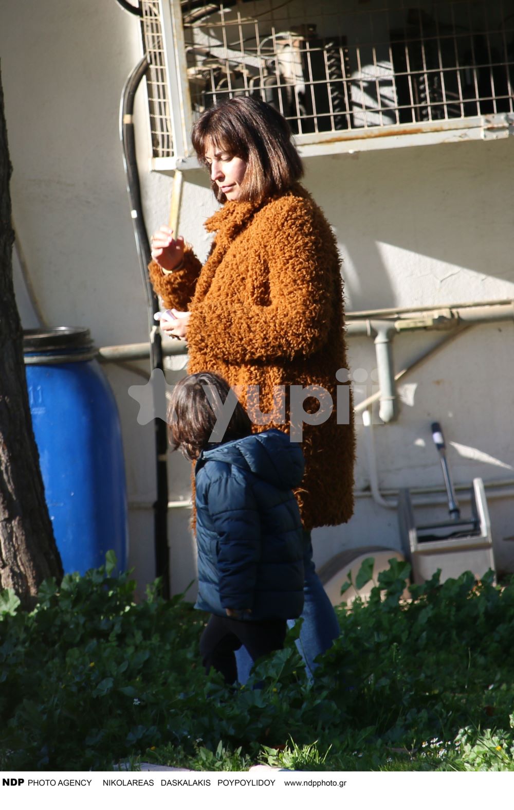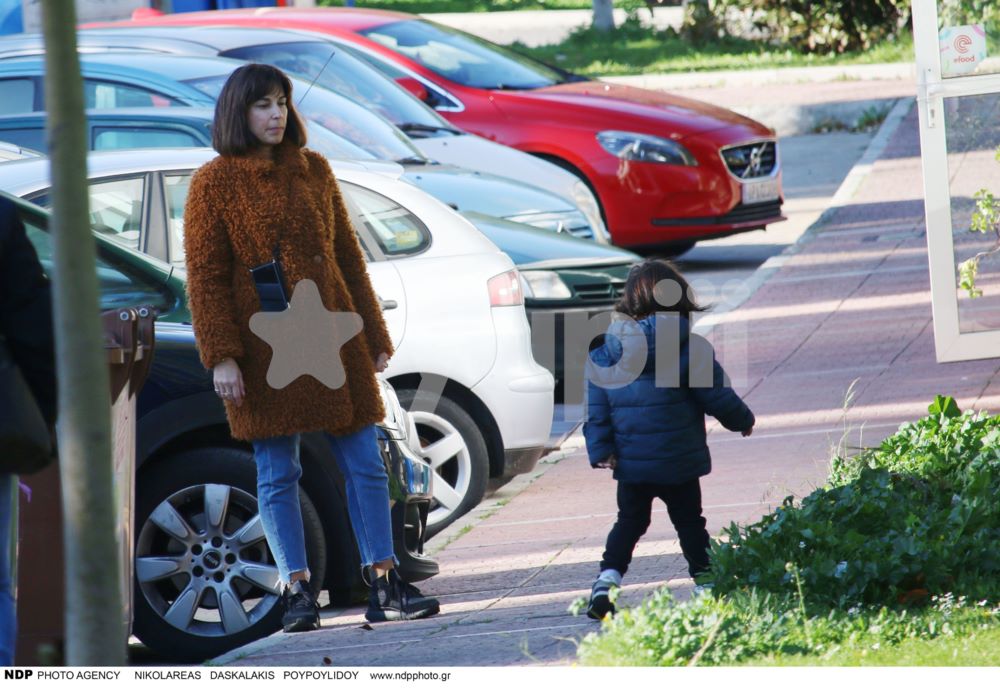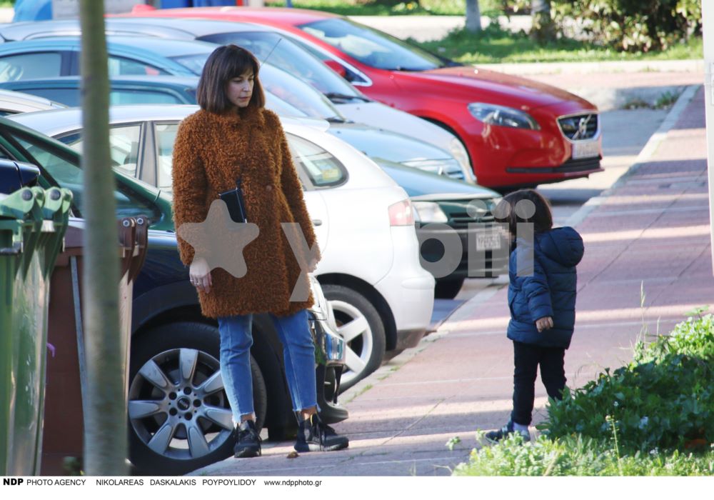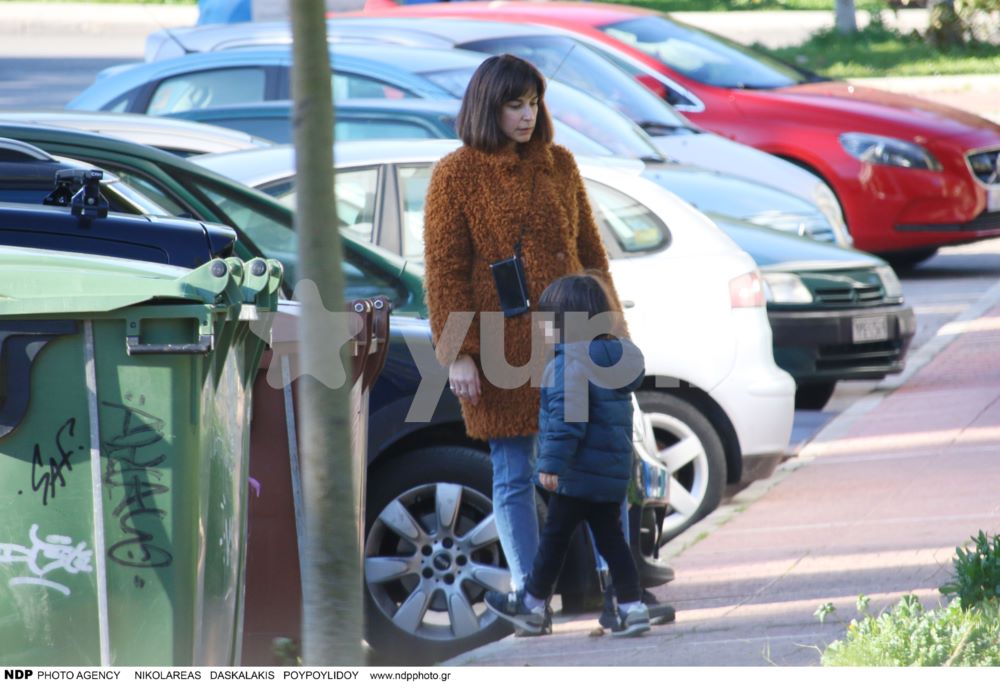 Στα στιγμιότυπα, η Κατερίνα Παπουτσάκη εμφανίζεται άνετη, casual ντυμένη και πάντα δίπλα στο πλευρό του Κίμωνα, ο οποίος δεν φαίνεται να τρέχει και να παίζει γύρω της.