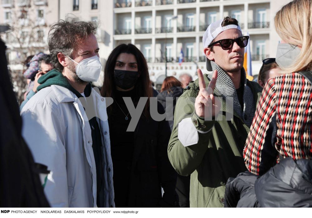 Ανάμεσα στον κόσμο που έδωσε το "παρών" βρέθηκαν και εκπρόσωποι του εγχώριου καλλιτεχνικού χώρου. Ο φωτογραφικός φακός απαθανάτισε τον Κωστή Μαραβέγια, την Τόνια Σωτηροπούλου, τον Αποστόλη Τότσικα και τον Γιώργο Χρανιώτη στην πλατεία Συντάγματος.