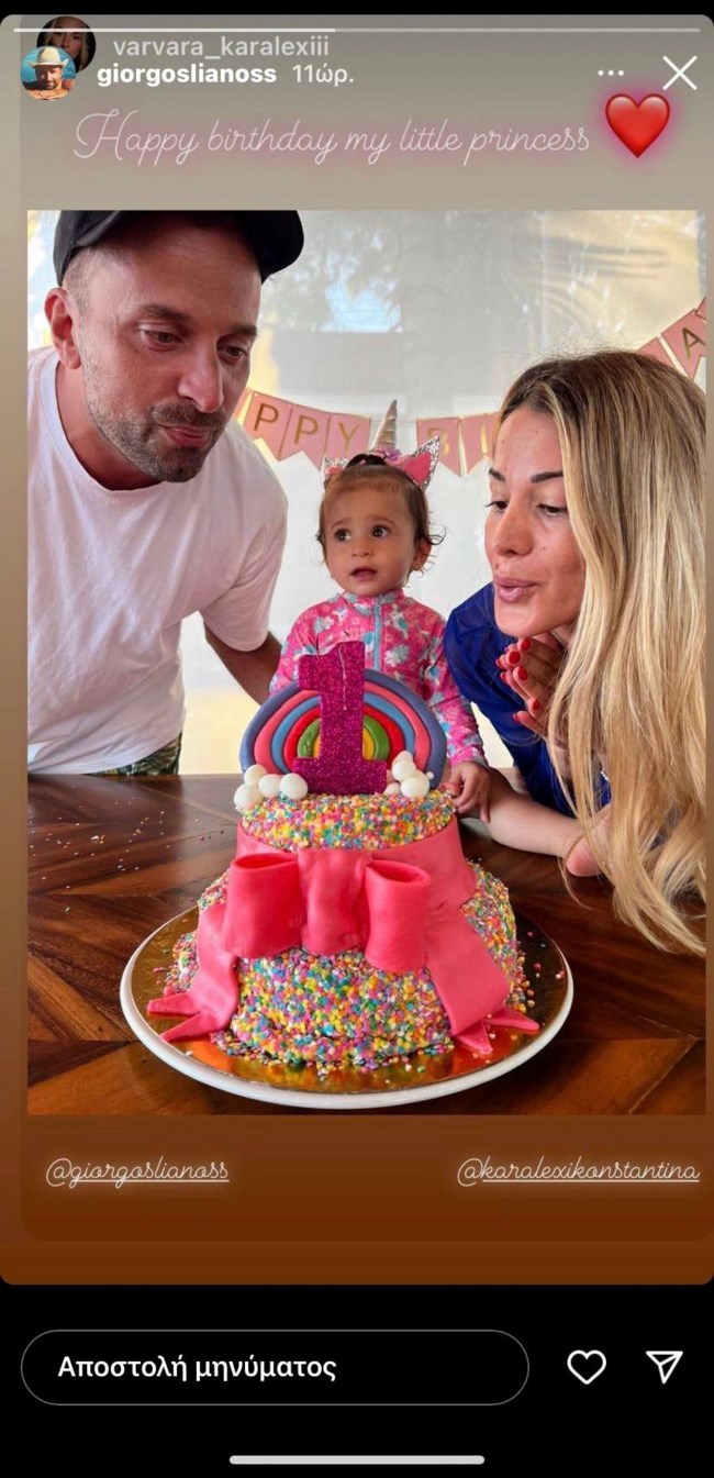 Πιο συγκεκριμένα ο Γιώργος Λιανός δημοσίευσε στον προσωπικό του λογαριασμό στο instagram μία φωτογραφία στην οποία βλέπουμε την οικογένεια μαζί με την τούρτα υπερπαραγωγή της κόρης τους. "Χαρούμενα γενέθλια μικρή μου πριγκίπισσα" αναγράφεται πάνω στο post".