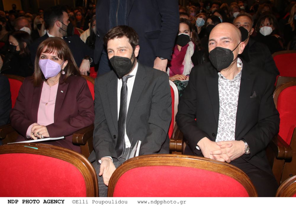 Η Πρόεδρος της Δημοκρατίας, Κατερίνα Σακελλαροπούλου, βρέθηκε επίσης στην πρεμιέρα του "Εθνικού Θεάτρο". Μαζί της στη φωτογραφία ο Νικόλας Γιατρομανωλάκης και ο Γιάννης Μόσχος.