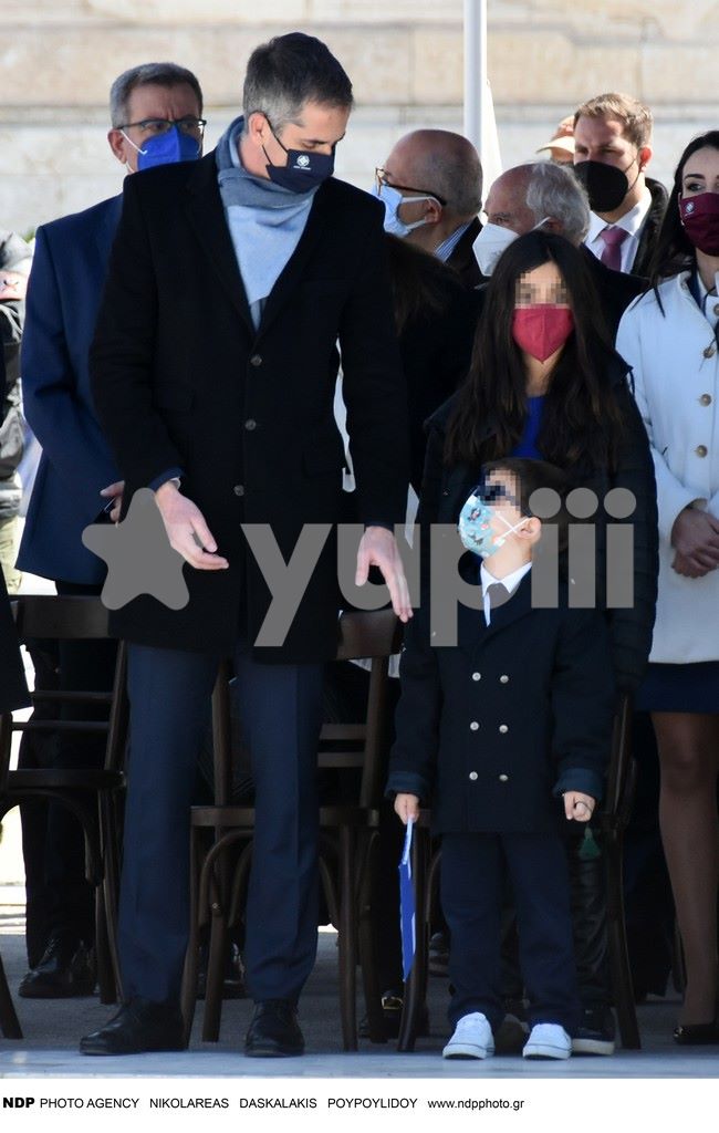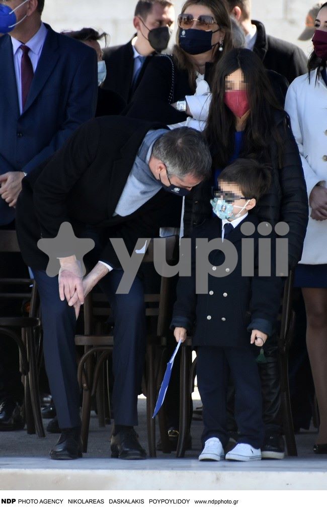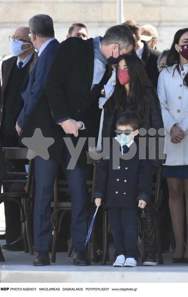Ο φωτογραφικός φακός ήταν εκεί και τον απαθανάτισε με τα παιδιά του την ώρα της παρέλασης. Μάλιστα ο μικρός Δήμος τράβηξε όλα τα βλέμματα με το κοστούμι που φορούσε.