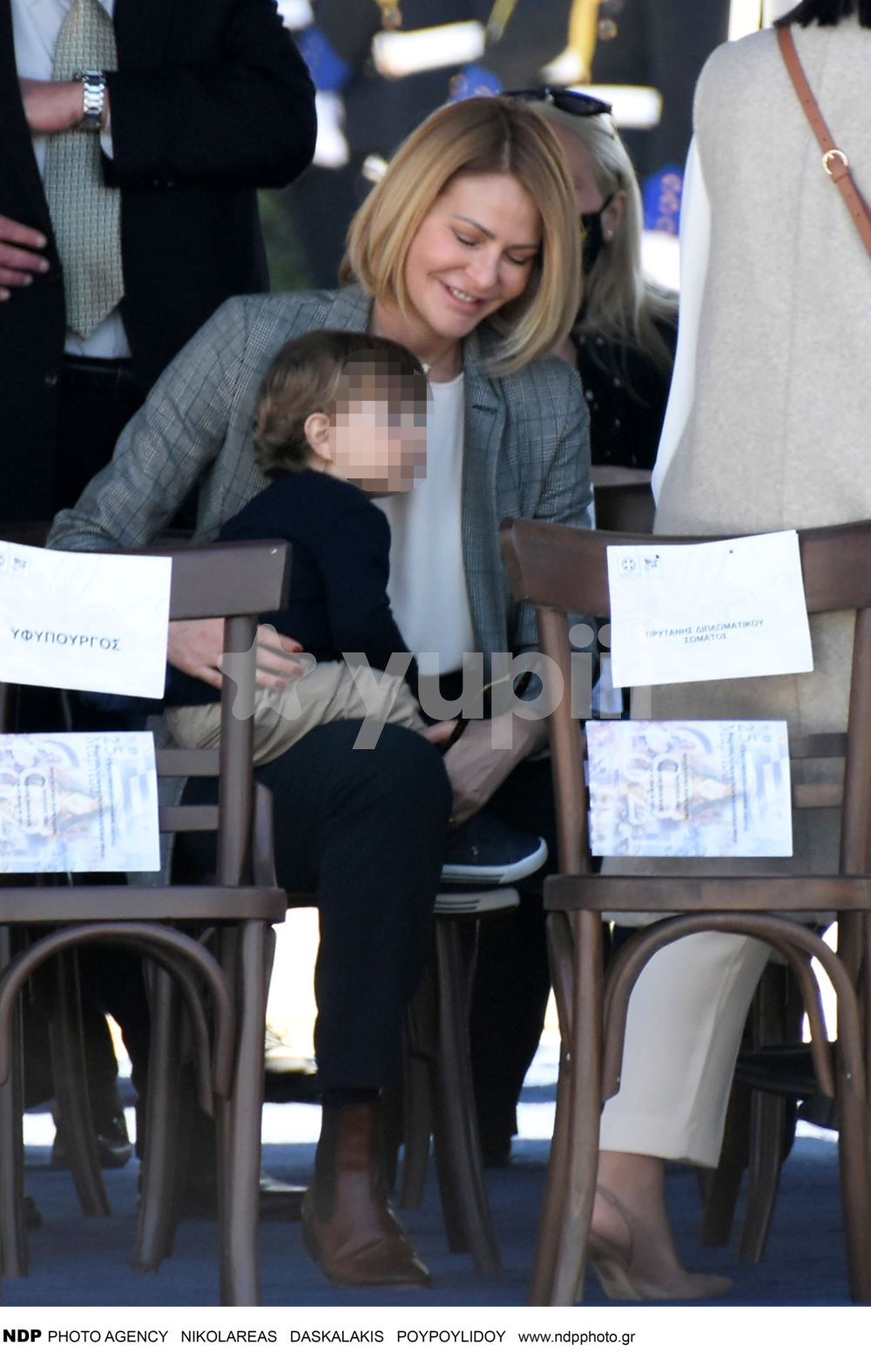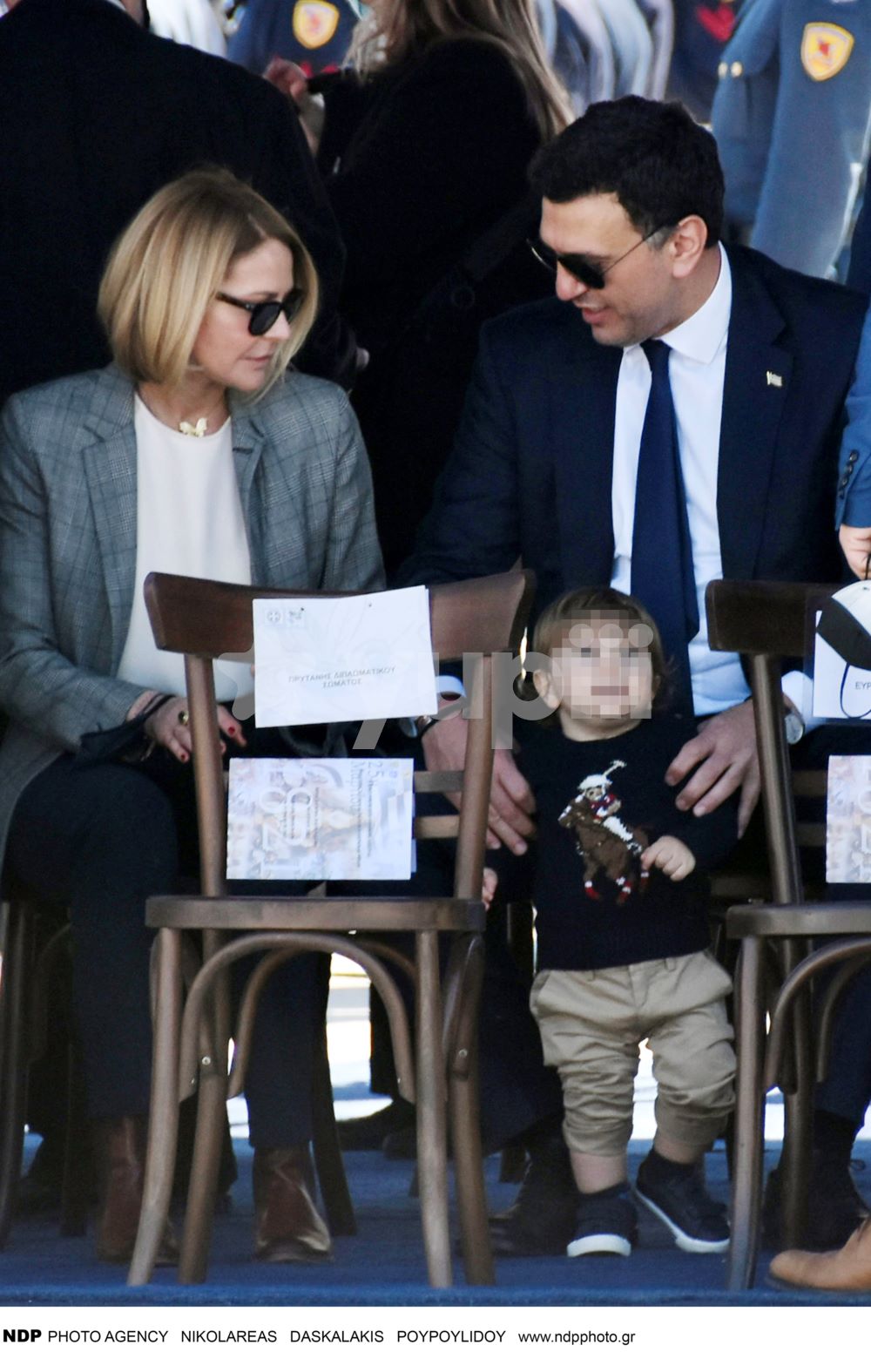 Ο Υπουργός Τουρισμού και το διάσημο πρώην μοντέλο, παρουσιάστρια και επιχειρηματίας, από την εξέδρα των επισήμων, έχοντας στο πλευρό τον 1,5 ετών γιο τους, Παναγιώτη-Αντώνιο, παρακολούθησαν μαζί την παρέλαση και τίμησαν αυτή την τόσο σημαντική ημέρα για τη χώρα μας.