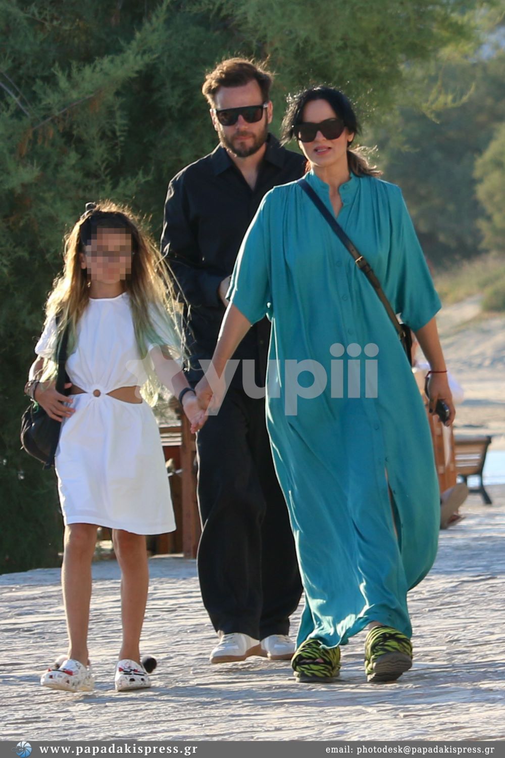 Χαλαρή, ευδιάθετη και έχοντας στο πλευρό της τον άντρα της και τα δυο της παιδιά η Ζενεβιέβ Μαζαρί απολαμβάνει τις καλοκαιρινές τις διακοπές και το διάλειμμα από τις επαγγελματικές της υποχρεώσεις στο όμορφο και μικρό νησί των Κυκλάδων. Όλοι μαζί περπάτησαν στο νησί και πέρασαν οικογενειακές στιγμές χαλάρωσης και ξεγνοιασιάς.