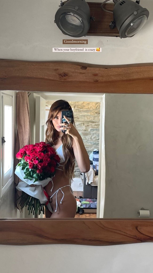 Το γνωστό μοντέλο βρίσκεται για διακοπές με τις φίλες της, όμως ο τραγουδιστής δεν την άφησε έτσι, μιας και τις είχε ετοιμάσει μια έκπληξη. Συγκεκριμένα τις έστειλε μια ανθοδέσμη από κόκκινα τριαντάφυλλα.