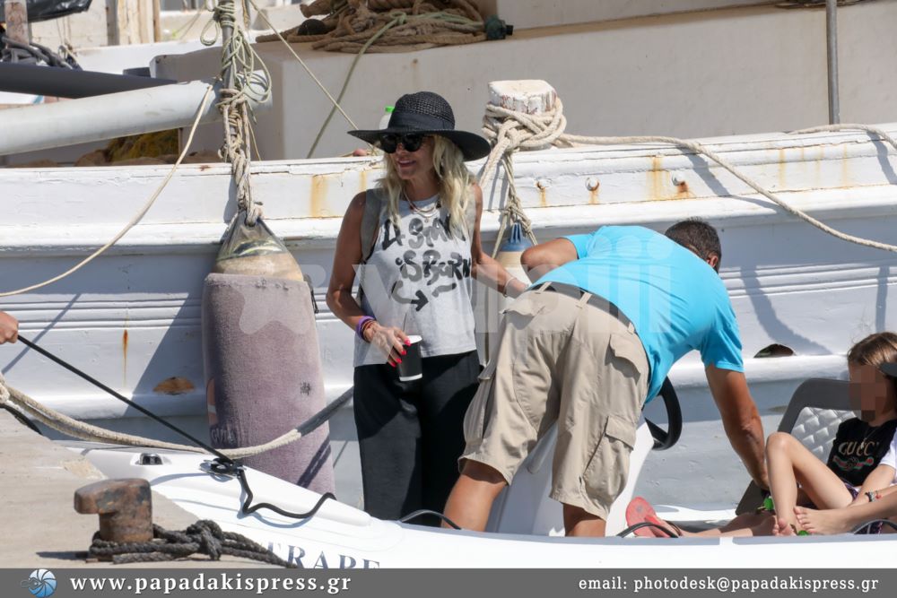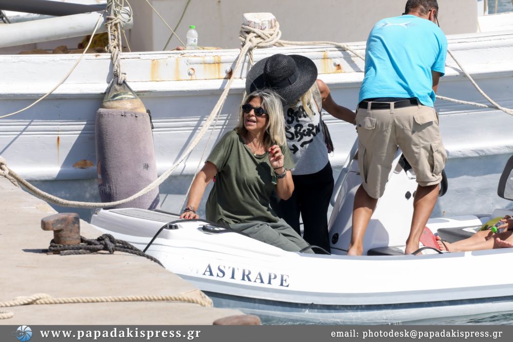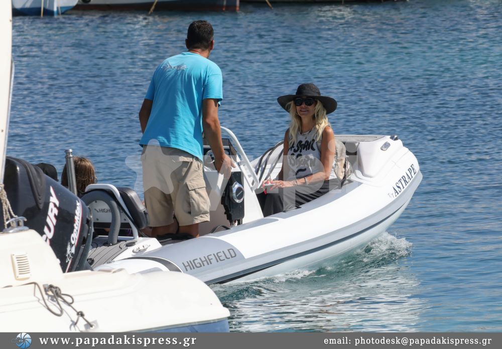 Συγκεκριμένα, η Άννα Βίσση απαθανατίστηκε με τα εγγόνια της, Νίκο και Νέστορα, και την αδερφή της Νίκη σε γνωστή παραλία του γραφικού νησιού των Κυκλάδων να απολαμβάνει οικογενειακές στιγμές εν πλώ.