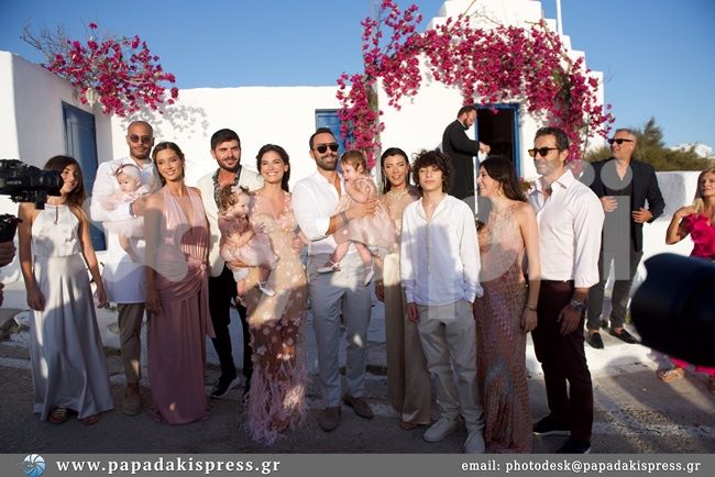 Η βάφτιση των μικρών έγινε στον Ιερό Ναό της Αγίας Άννας, στον Πλατύ Γιαλό της Μυκόνου . Τη μικρή Φιλίππα βάφτισαν ο Μάνος Γαβράς με την Μαρίνα Βερνίκου, την κόρη της, Ντεμήλια Καμπουρίδη, και τον γιο της, Γιώργο Καμπουρίδη.