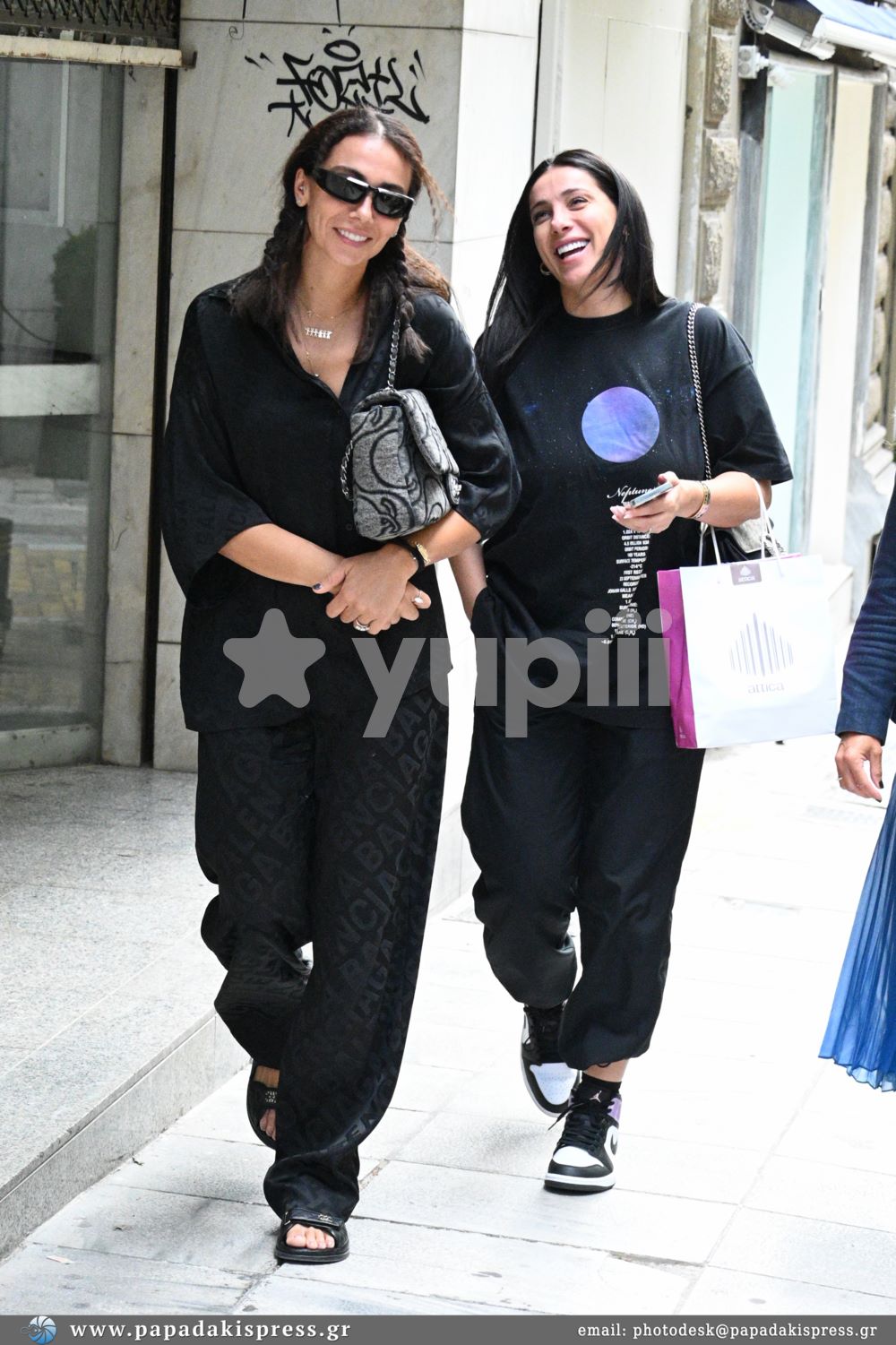 Στις φωτογραφίες τους βλέπουμε να απολαμβάνουν την έξοδό τους παρέα με την αδερφή της Ολυμπίας Χοψονίδου, τη Βαλέρια Χοψονίδου. Οι δύο αδερφές ντυμένες με casual looks χαμογέλασαν μάλιστα στις κάμερες.