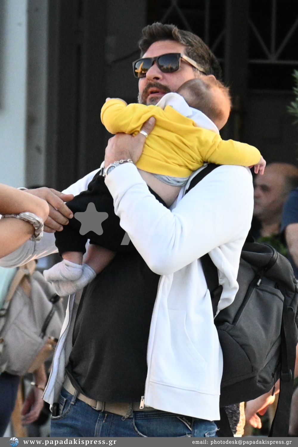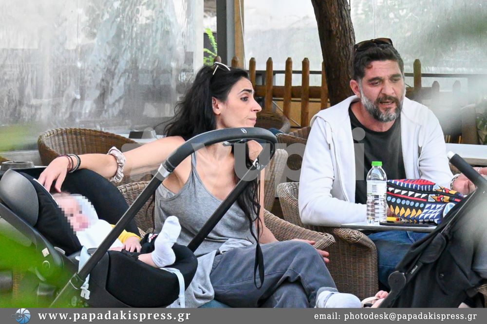Η χαρούμενοι γονείς επέλεξαν το Θησείο για να απολαύσουν τη χαλαρή τους έξοδο ενώ δεν άφησαν λεπτό από τα μάτια τους τον νεογέννητο γιο τους.