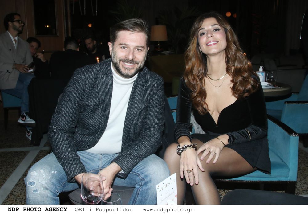Απαστράπτουσα η Κατερίνα Παπουτσάκη μετά την πρεμιέρα της στο "Παλλάς" με την "Αυλή των θαυμάτων". Στη φωτογραφία με τον Αλέξανδρο Μπουρδούμη στο after party της παράστασης στο "Athenee"