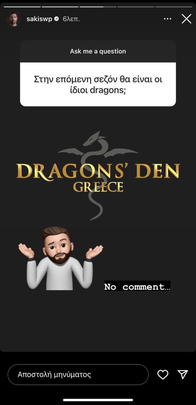 Ερωτήσεις σχετικές με τη δεύτερη σεζόν του "Dragons' Den" δέχτηκε ο Σάκης Τανιμανίδης στα social media.
