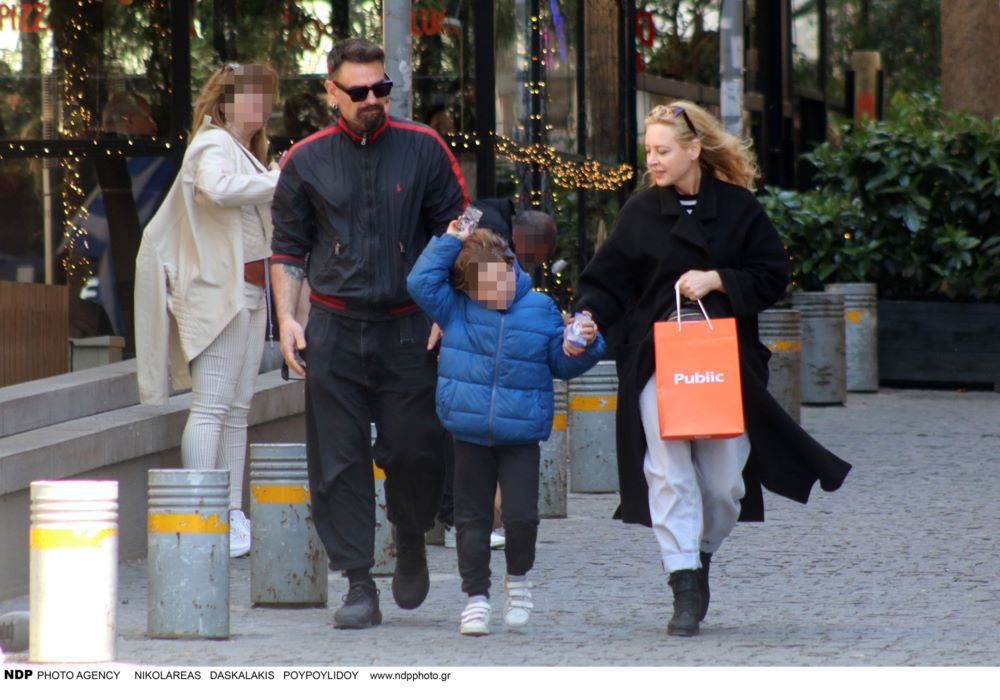 Κωνσταντίνος Γιαννακόπουλος & Φαίη Ξυλά με τον γιο τους στο κέντρο της Αθήνας