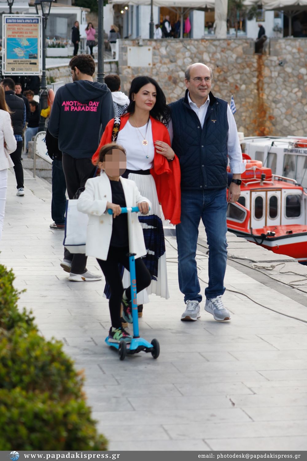 Ο Κωστής Χατζηδάκης με τη σύζυγό του, Πόπη, και τον γιο τους στις Σπέτσες