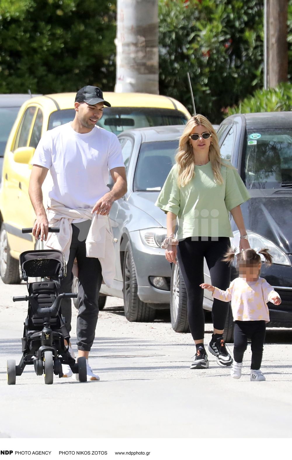 Ο Κώστας Σλούκας με τη Μαρία Δαρσινού και την κόρη τους στη Γλυφάδα