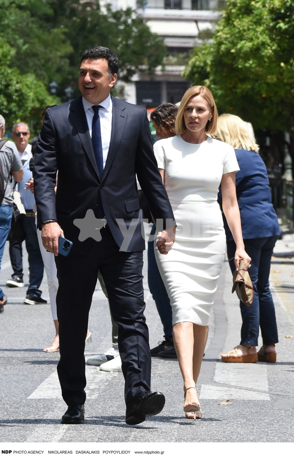 Βασίλιας Κικίλιας & Τζένη Μπαλατσινού έξω από το Προεδρικό Μέγαρο
