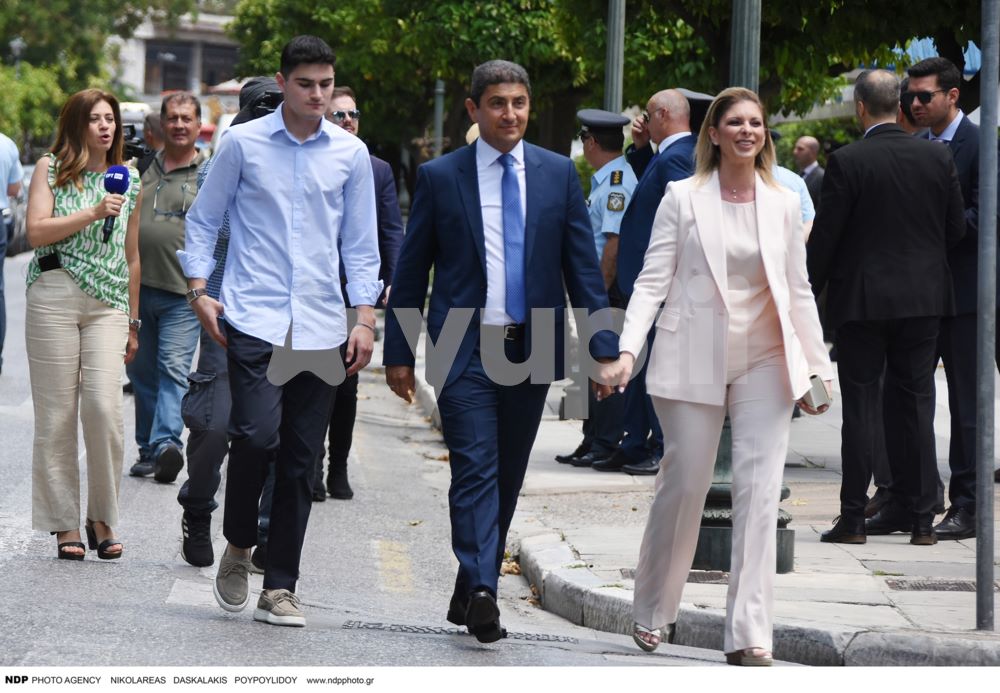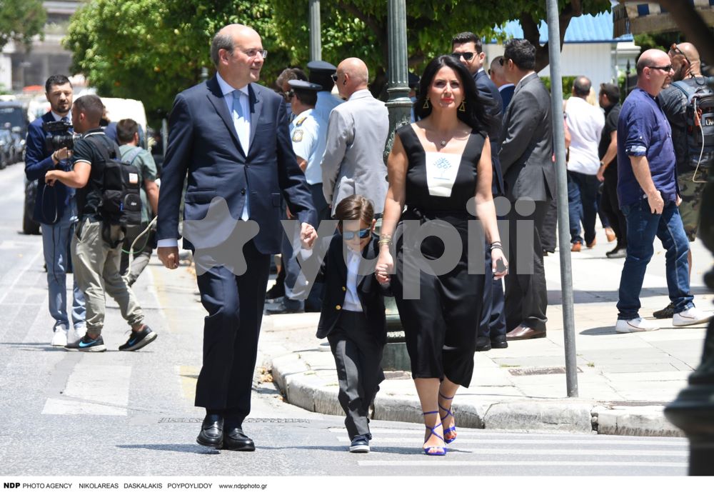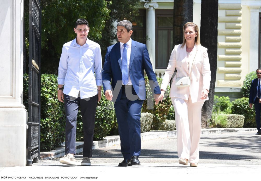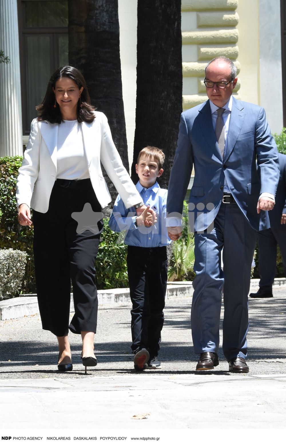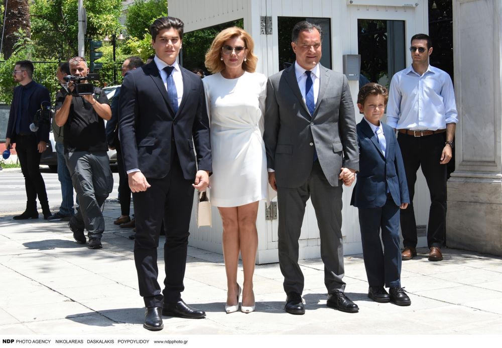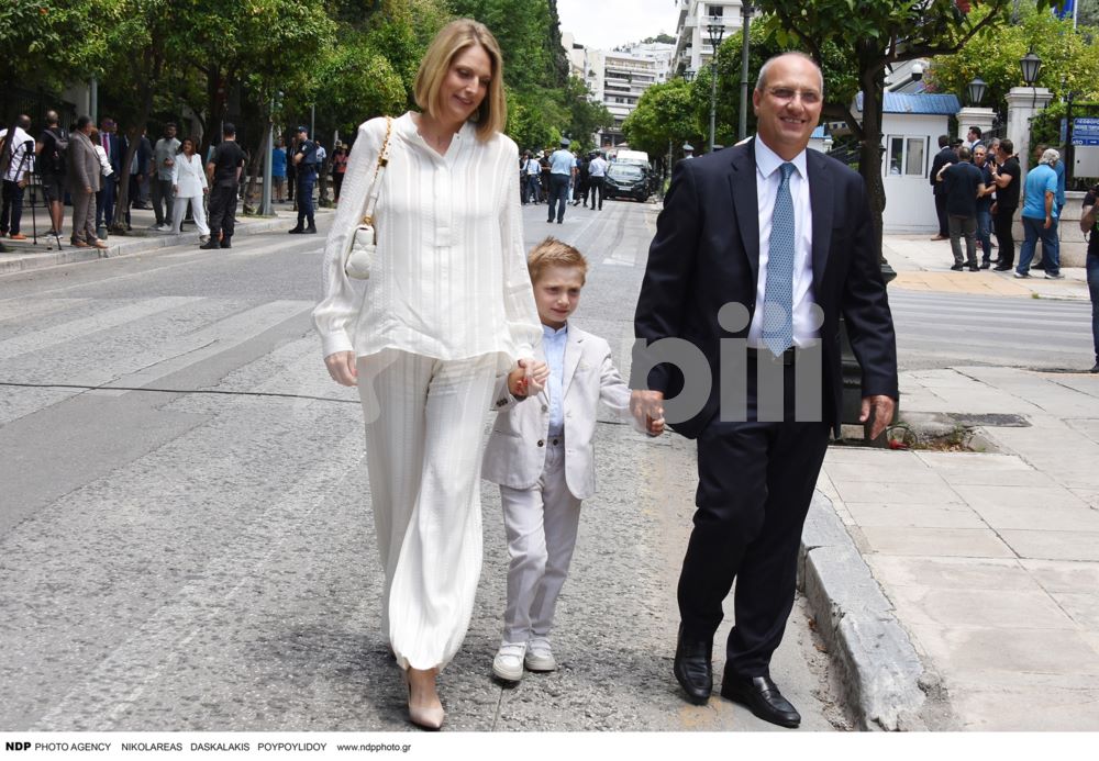 Έλενα Μπανιά & Λευτέρης Αυγενάκης με τον γιο τους, Κωνσταντίνο, στην ορκωμοσία της Κυβέρνησης