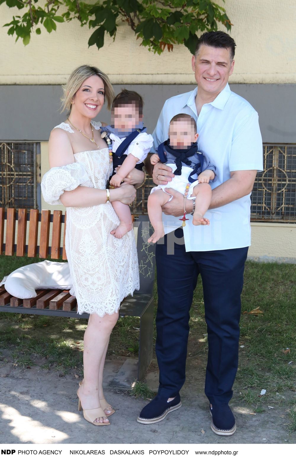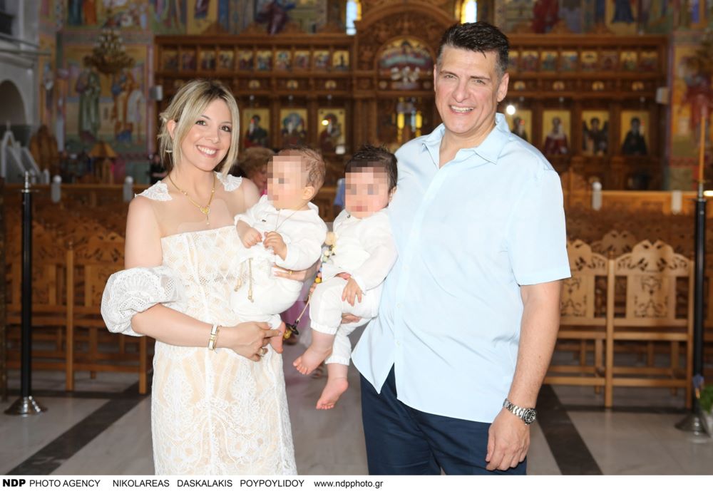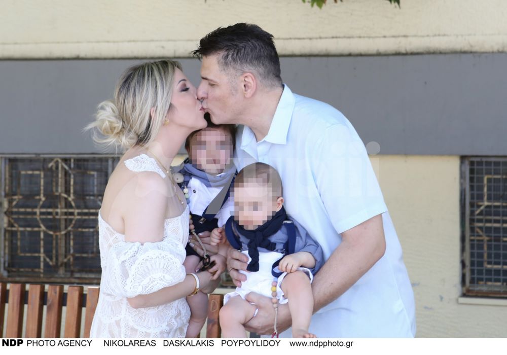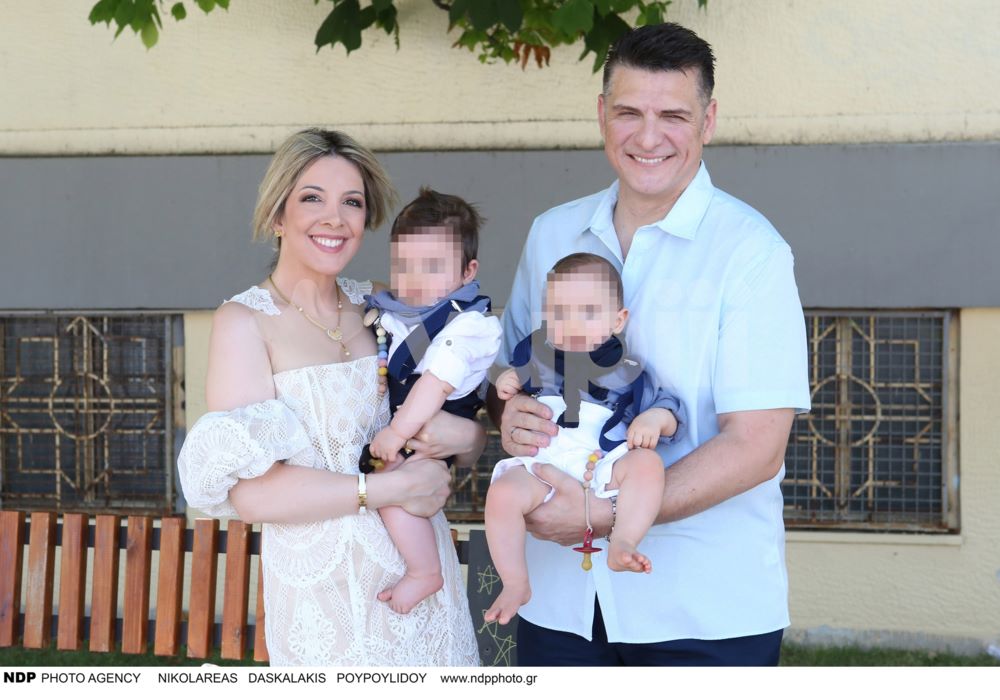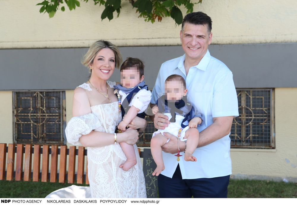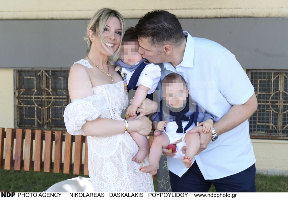 Ο Χρίστος Αντωνιάδης και η Αφροδίτη Τσώνου στη βάφτιση των διδύμων τους