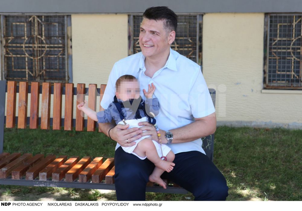 Ο Χρίστος Αντωνιάδης στη βάφτιση των διδύμων του