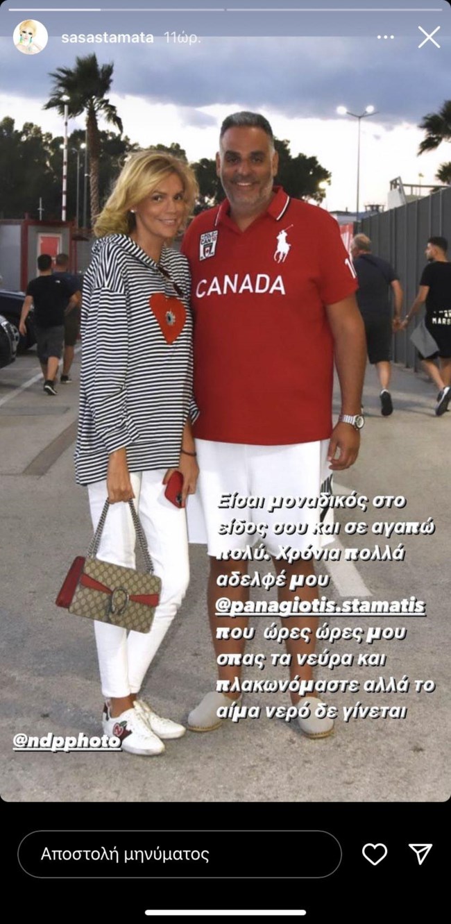 Η Σάσα Σταμάτη έγραψε πάνω στην ανάρτηση: "Είσαι μοναδικός στο είδος σου και σε αγαπώ πολύ. Χρόνια πολλά αδερφέ μου @panagiotis.stamatis που ώρες - ώρες μου σπας τα νεύρα αλλά το αίμα νερό δεν γίνεται".