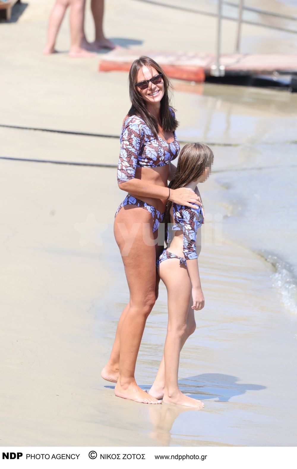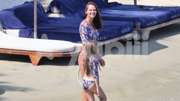 Όπως μπορεί εύκολα να διακρίνει κανείς, μαμά και κόρη φορούν το ίδιο μπικίνι για το μπάνιο τους στη Μύκονο. Στις φωτογραφίες βλέπουμε την Υβόννη Μπόσνιακ αρκετά ευδιάθετη, να χαμογελά και στον φωτογραφικό φακό.