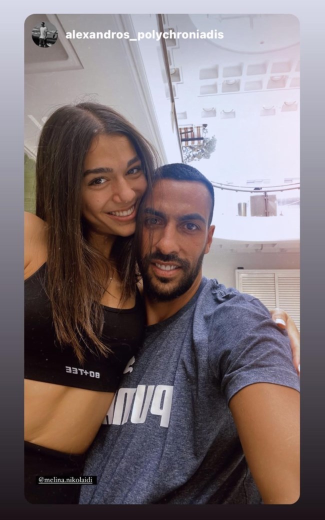 Το πρωί της Τετάρτης, ο Αλέξανδρος Πολυχρονιάδης ανήρτησε ένα τρυφερό τους στιγμιότυπο στον προσωπικό του λογαριασμό στο Instagram από το γυμναστήριο. Η Μελίνα Νικολαΐδη έκανε την καθιερωμένη προπόνησή της στο γυμναστήριο του αγαπημένου της και πόζαραν αγκαλιά.