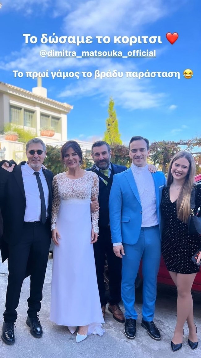Στα instastory της Αναστασίας Τσιλιμπίου, με την οποία πρωταγωνιστούν μαζί στην παράσταση "Μαθήματα Κωμωδίας" του Θοδωρή Αθερίδη, βλέπουμε τη Δήμητρα Ματσούκα νύφη μαζί με τον Πέτρο Κοκκαλη.