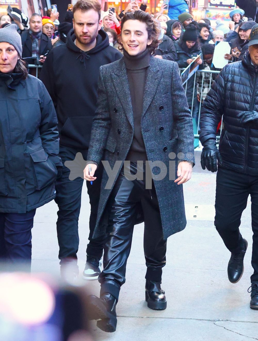 O Timothée Chalamet φεύγοντας από από την τηλεοπτική εκπομπή "Good Morning America" στην Times Square της Νέας Υόρκης.