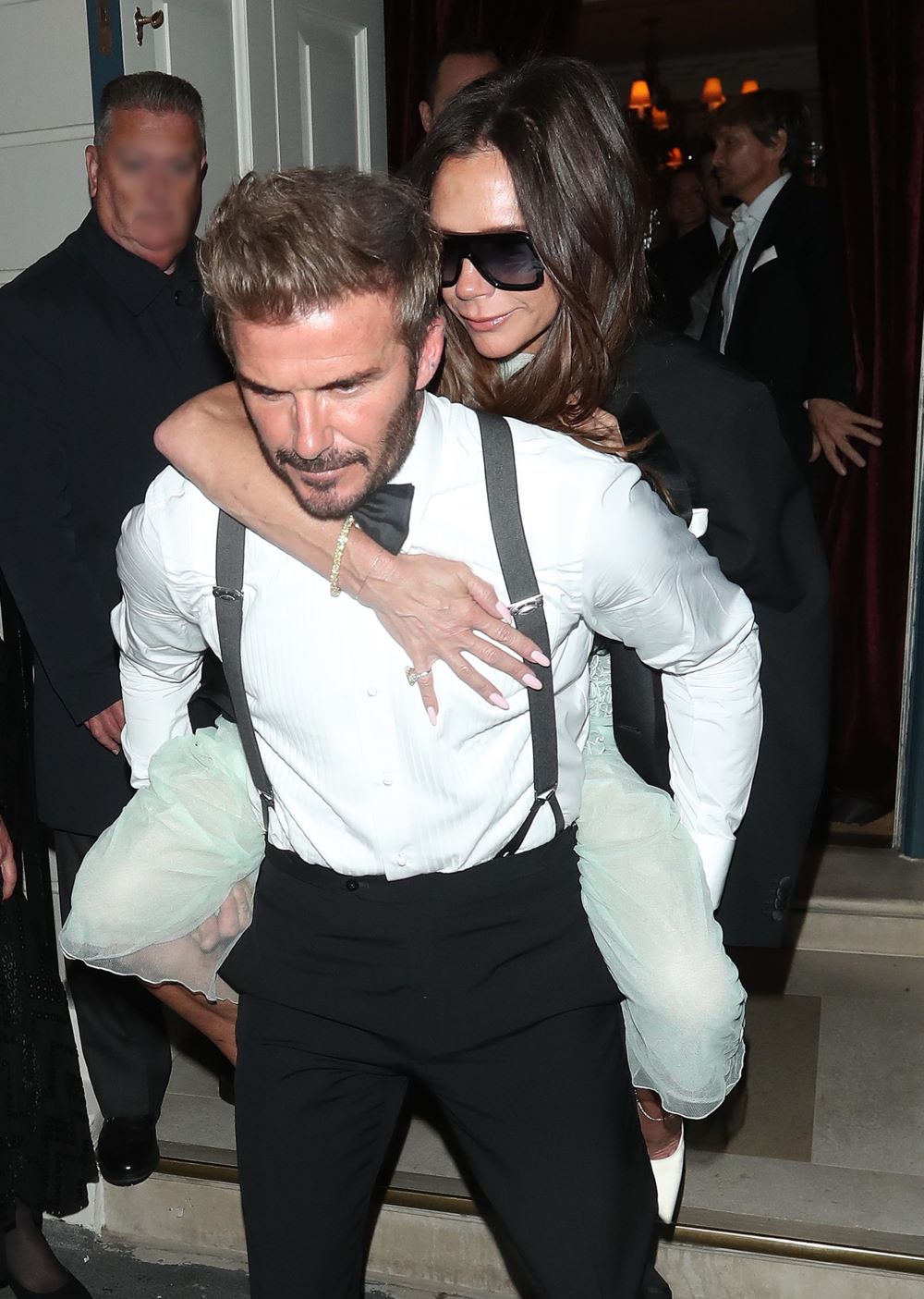 Η εορτάζουσα διασκέδασε μαζί με τα αγαπημένα της πρόσωπα και -όπως φαίνεται και από τα paparazzi στιγμιότυπα- έκανε στιλάτη έξοδο από το πάρτι της, ανεβαίνοντας στους ώμους του David Beckham.