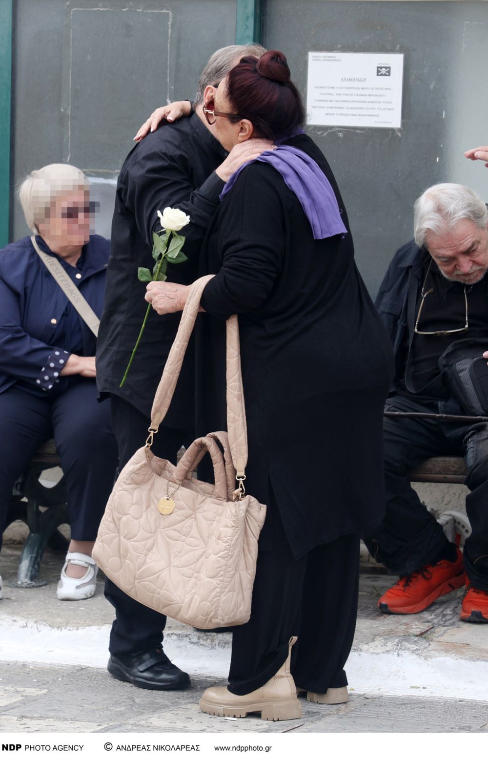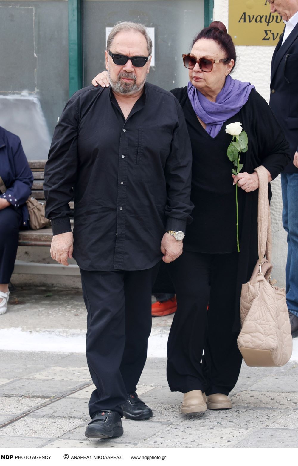 Ο Σταμάτης Φασουλής και η Μίρκα Παπακωνσταντίνου, στενοί φίλοι της ηθοποιού, έφθασαν από τους πρώτους στο κοιμητήριο του Ζωγράφου.