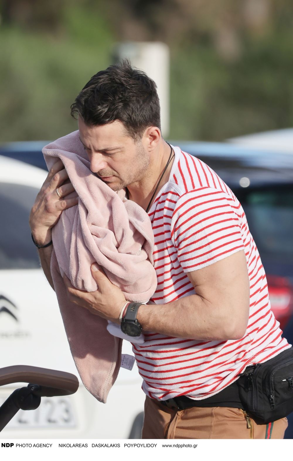 Οικογενειακές στιγμές για τον Γιώργο Αγγελόπουλο, τη Δήμητρα Βαμβακούση και την κόρη τους στη Βούλα.