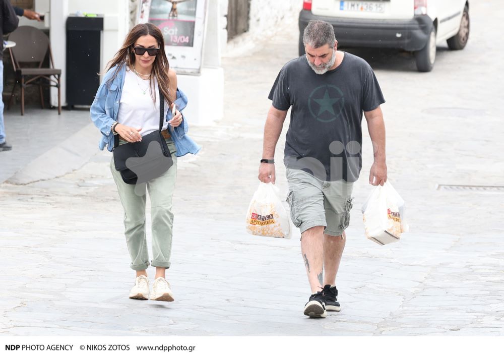 Η Δέσποινα Βανδή και ο Βασίλης Μπισμπίκης σε στιγμιόυτπο από τις πρόσφατες διακοπές τους στη Μύκονο.