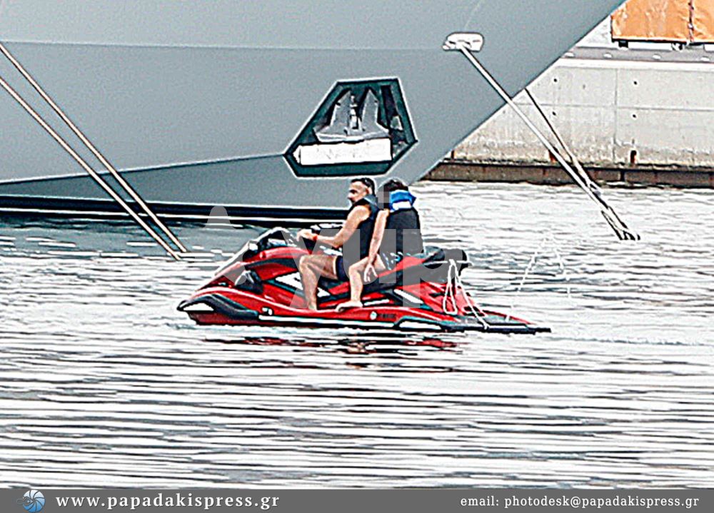 Ο Γιώργος Λιάγκας απαθανατίστηκε στη Βουλιαγμένη πάνω στο jetski με τον γιο του Γιάννη.