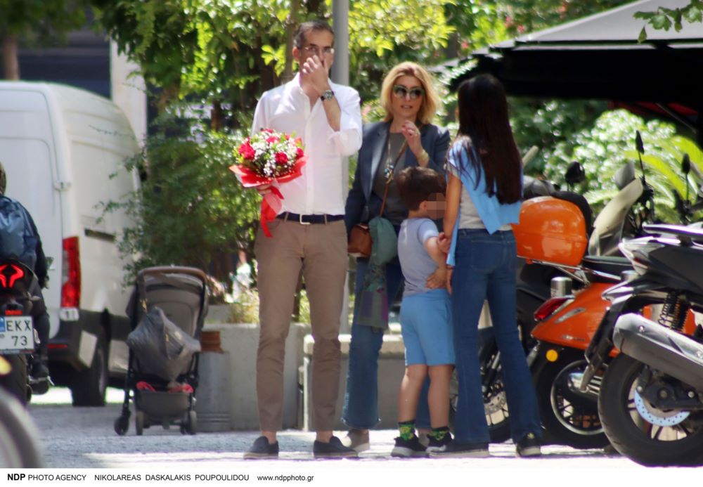 Ο Κώστας Μπακογιάννης και η Σία Κοσιώνη μαζί με τα παιδιά τους, Δήμο και Δανάη, στην Αθήνα.