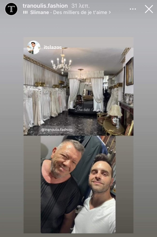 Όπως αποκάλυψε μέσα από stories του στο Tik Tok και το Instagram, o Λάζος Μαντικός επισκέφτηκε τον γνωστό οίκο Τρανούλη, από όπου ανέβασε μια σειρά φωτογραφιών με ένα ασπρόμαυρο γαμπριάτικο κοστούμι αλλά και μία selfie με τον ιδρυτή του οίκου μόδας, Θεόδωρο Τρανούλη, σημειώνοντας "the best".